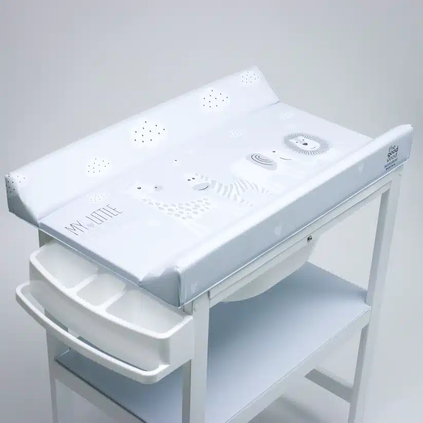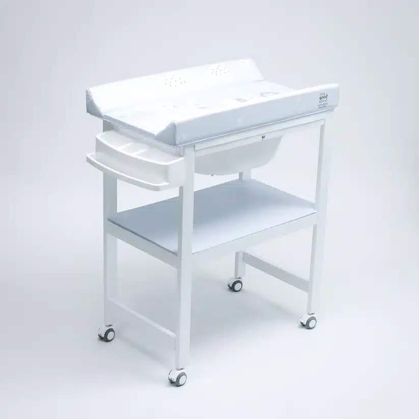 Evita el desorden y la incomodidad durante el baño. Nuestra bañera con cambiador y estantería te asegura una experiencia organizada y sin estrés.