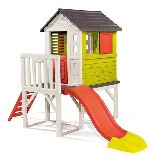 La casa de la playa de Smoby es una moderna casita que descansa sobre una estructura de 70 cm de altura con valla en la entrada principal. Este juguete de jardín incluye 2 ventanas correderas, portezuela en la entrada, escaleras y tobogán con conexión de manguera para conseguir una cascada de agua. Toda la casa ha sido tratada con nuestro sistema Anti-UV patentado que evita la pérdida de color y aumenta la resistencia del plástico. Los peques de la casa disfrutarán gateando, subiendo y bajando, tirándose por el tobogán e imaginando que están en su casa particular. Recomendada para niñas y niños a partir de 24 meses de edad.