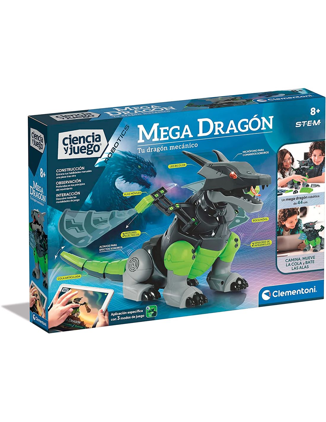 El Dragón se puede controlar mediante una App que se comunica con señales de alta frecuencia, con el silbato incluido en la caja, o con un simple aplauso.