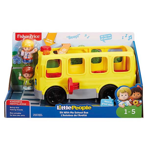 Coloca a la conductora Emily™ frente al volante para oír canciones divertidas y sonidos, y luego pon en marcha el autobús para ir hacia el cole! ¡Los niños pequeños incluso pueden ayudar a Eddie™ a hacer amigos nuevos llevando más personajes de Little People® con el autobús y sentándolos a todos juntos! Las figuras adicionales se venden por separado.