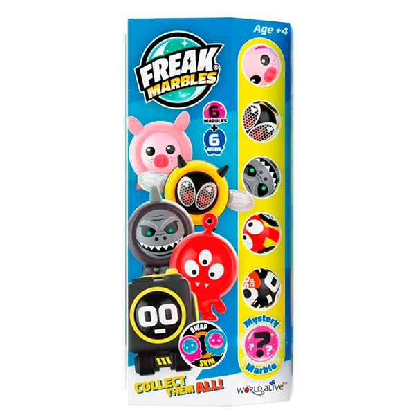 Set Freak Marbles que contiene 6 Marbles y 6 Skins (5, más uno sorpresa).