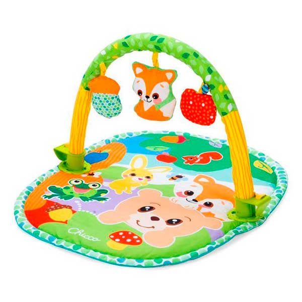 Con forma ovalada de 80 x 60 cm con gráficos coloridos y acolchado suave, incluye un arco de tela extraíble sostenido por una estructura de plástico. Con 3 juegos de tela colgantes extraíbles, incluido uno con sonajero, que se convierten en los primeros juguetes del bebé.