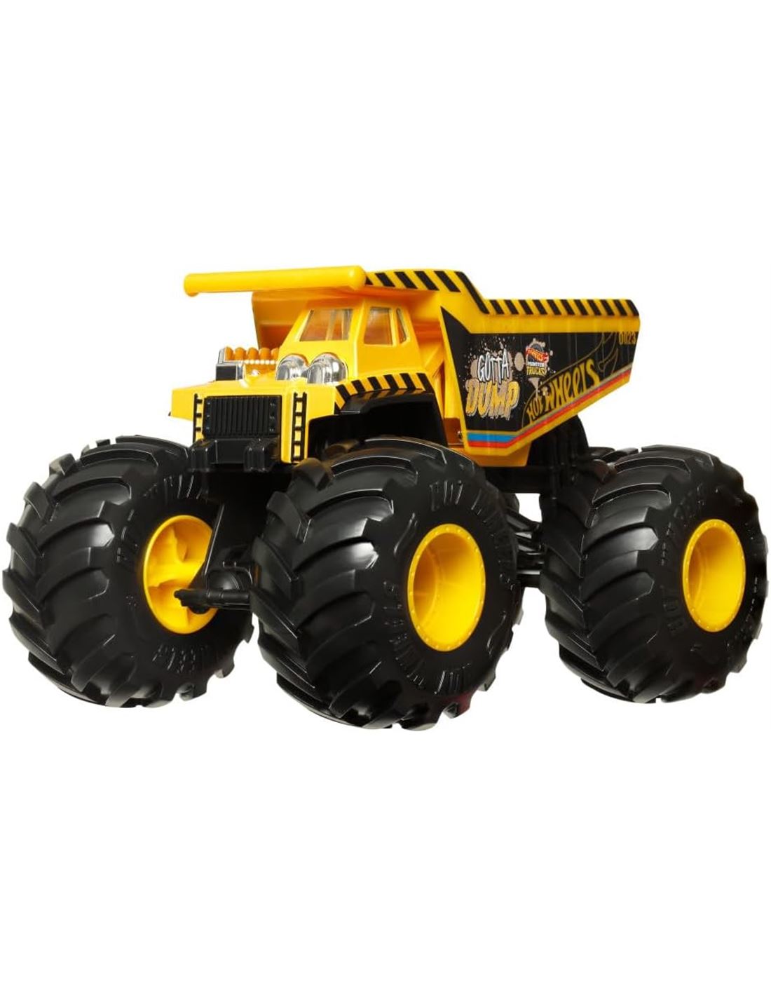 ¡Alucinante surtido de vehículos Monster Truck de Hot Wheels a escala 1:24 con carrocerías metálicas resistentes para jugar a chocar y aplastar!