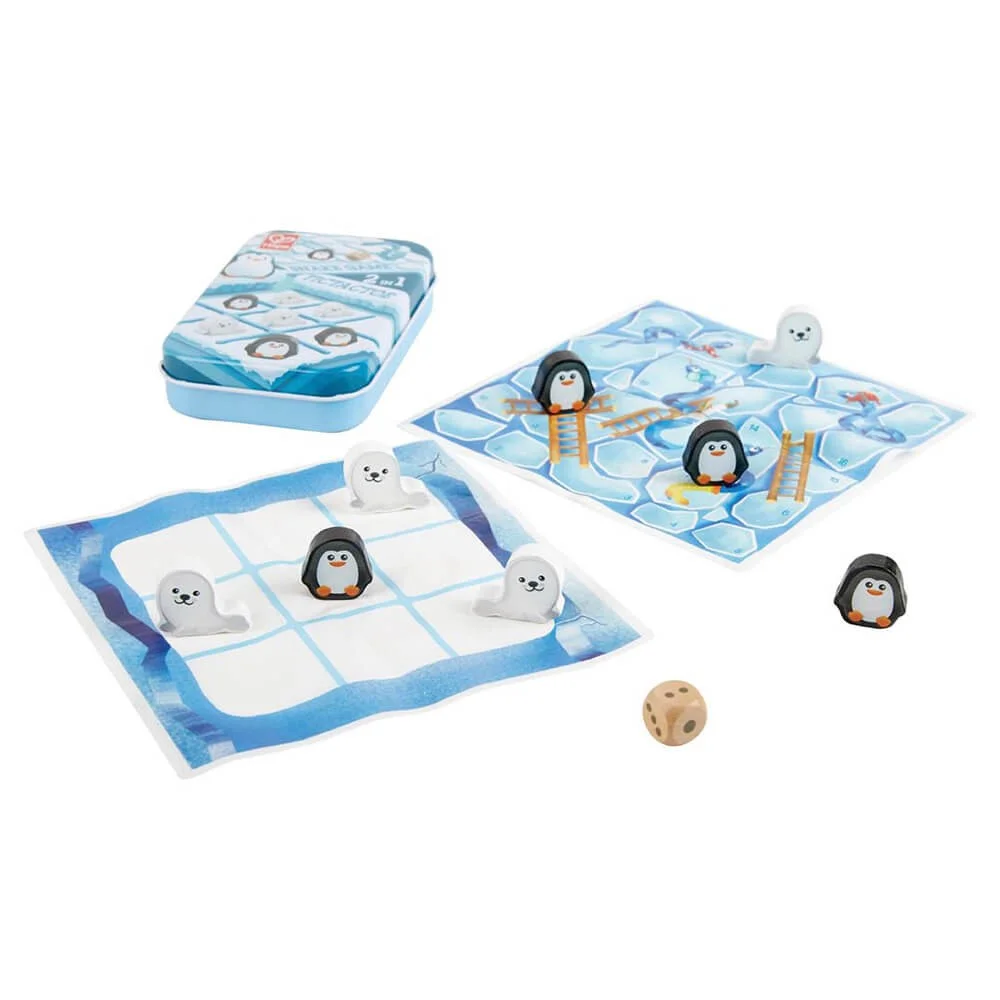 ¡Disfruta de dos clásicos juegos de mesa en uno solo! Este juego portátil combina el popular tres en raya con la diversión y emoción de Serpientes y Escaleras. Perfecto para viajes y entretenimiento en cualquier lugar.