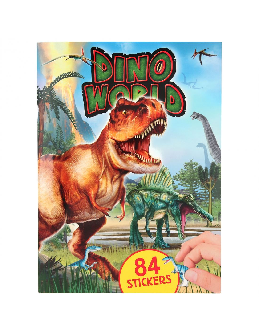Libro con 84 geniales pegatinas de dinosaurios (4 páginas de pegatinas de papel, 2 páginas de pegatinas de espuma Puffy) que dan vida a las 20 páginas de fondo primigenias pegatina a pegatina.