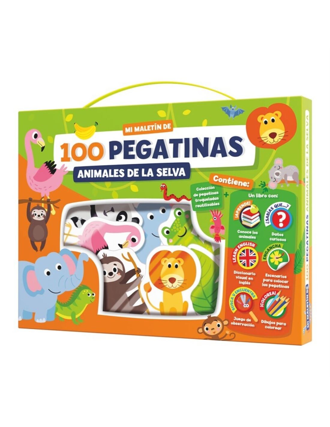 Incluye: Pegatinas troqueladas reutilizables, conocimientos de animales, catos curiosos, diccionario visual en inglés, escenarios para colocar las pegatinas, juego de observación y dibujos para colorear.