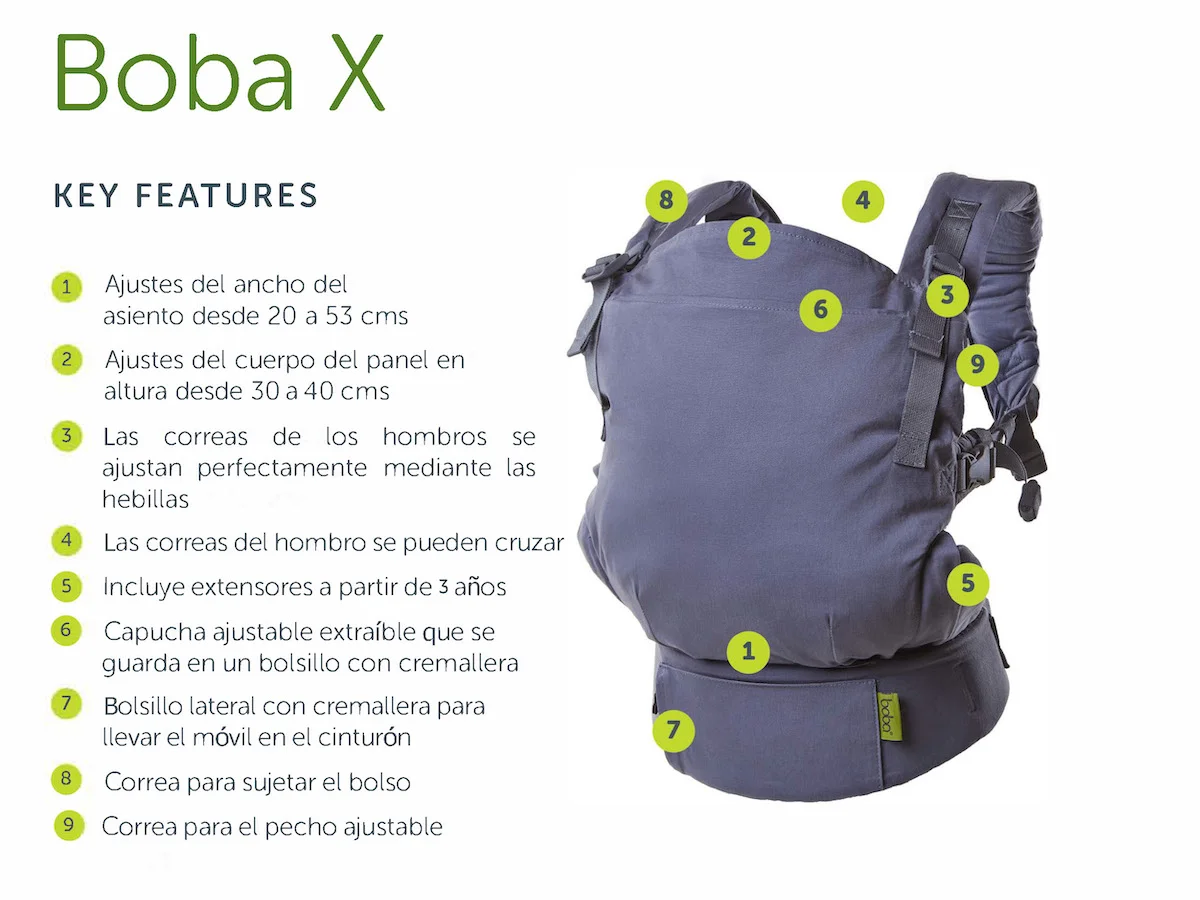 ¿Estás harta de comprar mochilas que tu bebé deja de usar a los pocos meses o que te provocan dolor de espalda? ¿Te preocupa no asegurar la posición ergonómica perfecta en cada etapa de crecimiento? Olvídate de preocupaciones por mochilas incómodas o poco adaptables. Por ello, la Mochila Evolutiva Boba X es la solución definitiva que se ajusta perfectamente y asegura el soporte adecuado desde los 4 kg hasta los 20 kg.