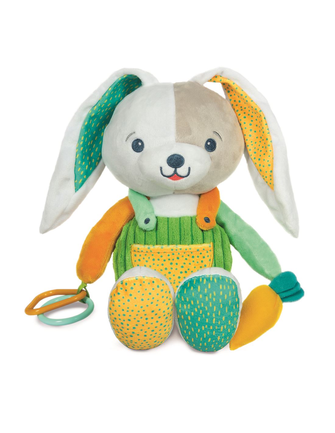 La zanahoria del conejito es ideal para el desarrollo táctil y auditivo del pequeño.