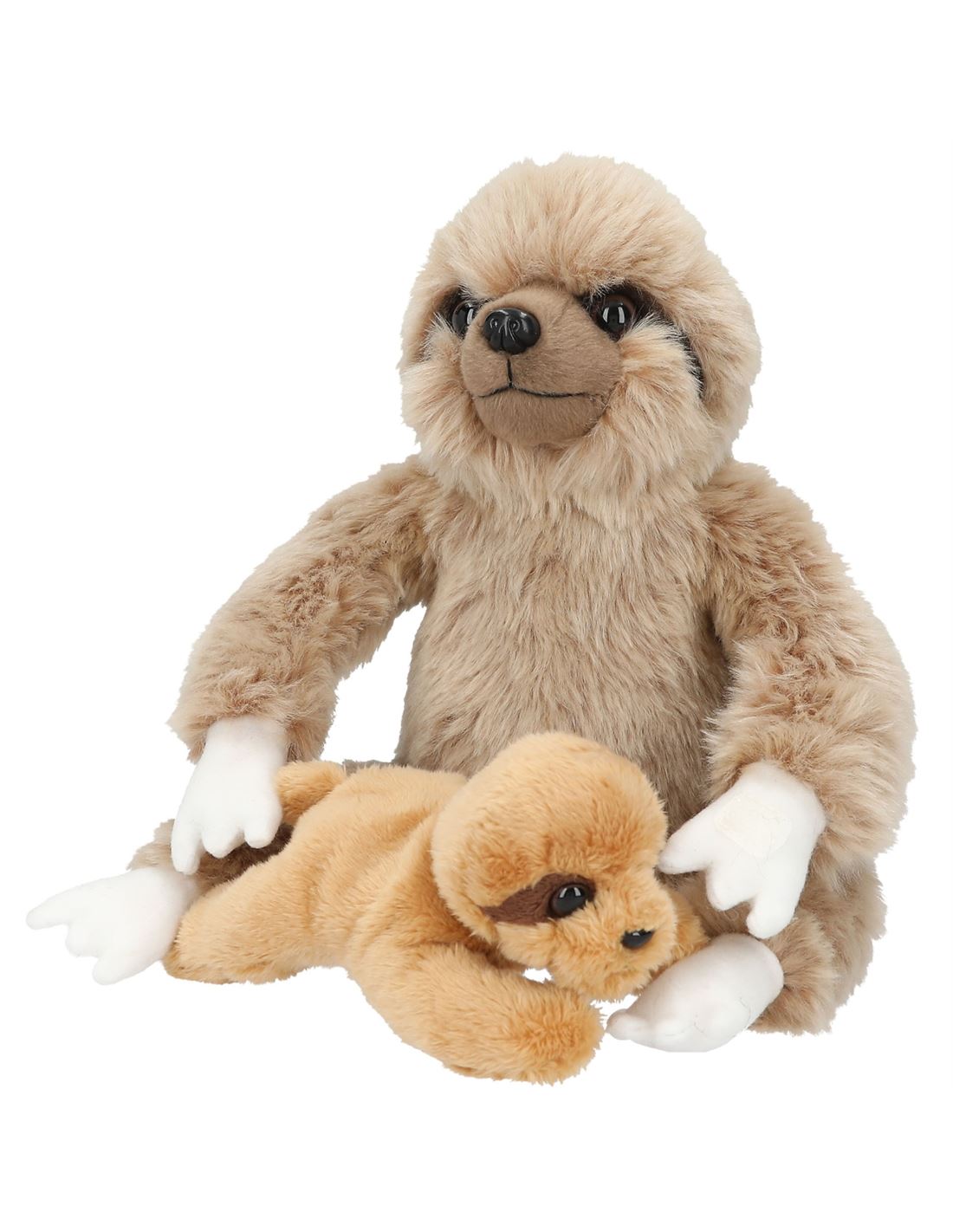 La mamá perezosa con su bebé al brazo son de peluche supersuave. Las manos de la mamá se cierran con velcro.