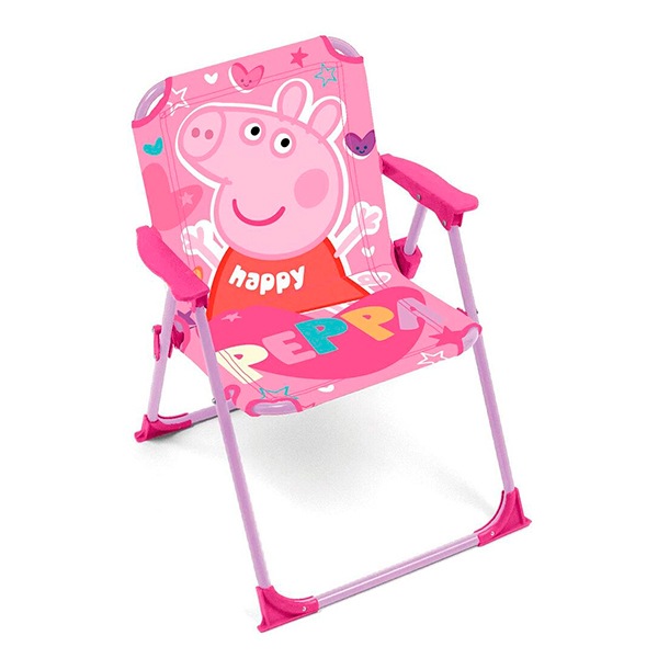 Silla plegable con brazos Peppa Pig con estructura de metal, asiento de polyester y apoyabrazos de plástico.