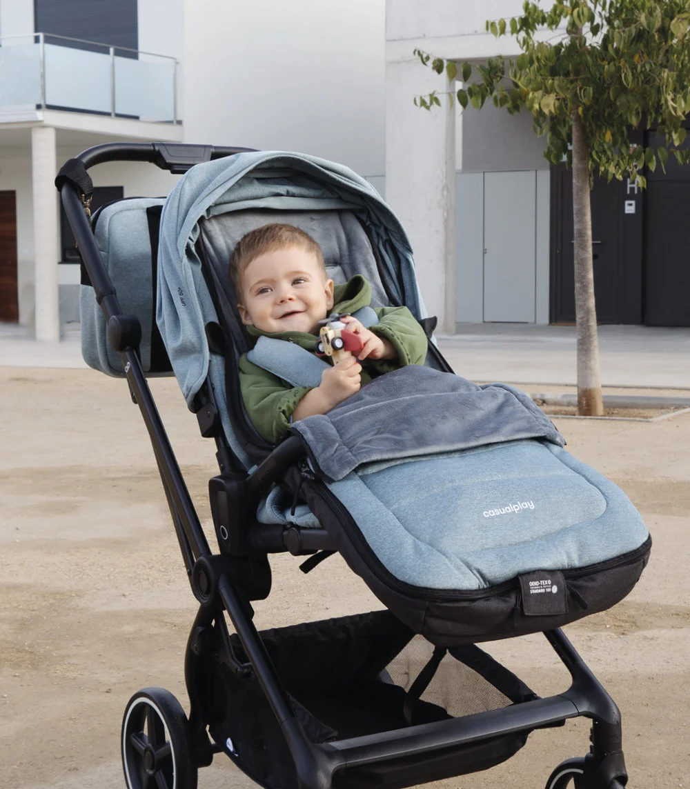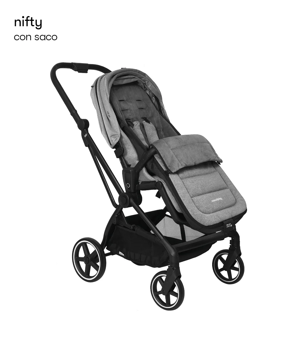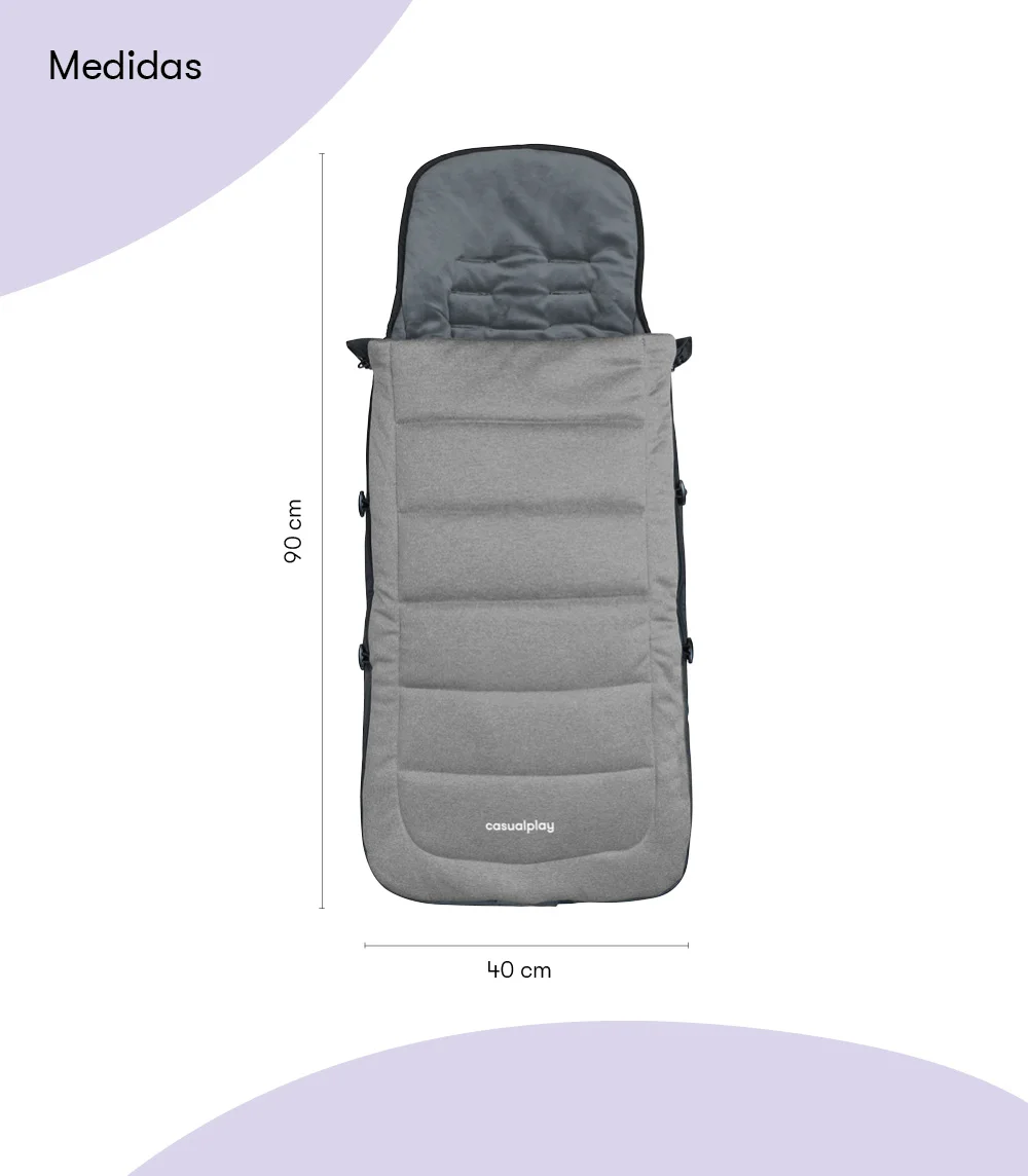 Con un peso ligero de solo 500 gramos y unas medidas de 40 cm de ancho por 90 cm de alto, es fácil de manejar y se adapta perfectamente a la mayoría de los cochecitos. Está fabricado con un exterior de poliéster, algodón y elastano, y un interior de forro polar, combinando resistencia con suavidad.
