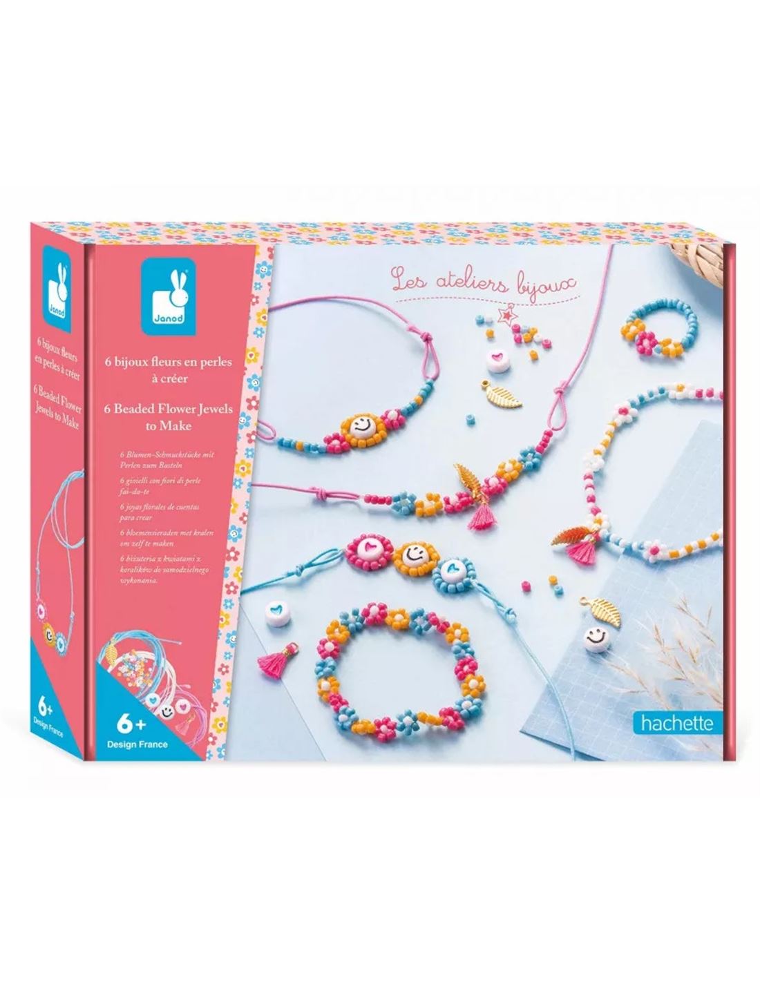 El contenido de este kit creativo permite hacer 3 pulseras, 2 collares y 1 anillo. Se necesitan entre 3 y 4 horas para hacer los 6 accesorios. Esta manualidad creativa es una actividad lúdica para los niños, que luego podrán lucir orgullosos sus creaciones. Flores, pompones y caritas sonrientes. ¡Unas joyas que transmiten buen humor! Manejar los abalorios y seguir las instrucciones son tareas que requieren concentración, destreza y calma. ¡y qué orgullo admirar el resultado al final!
