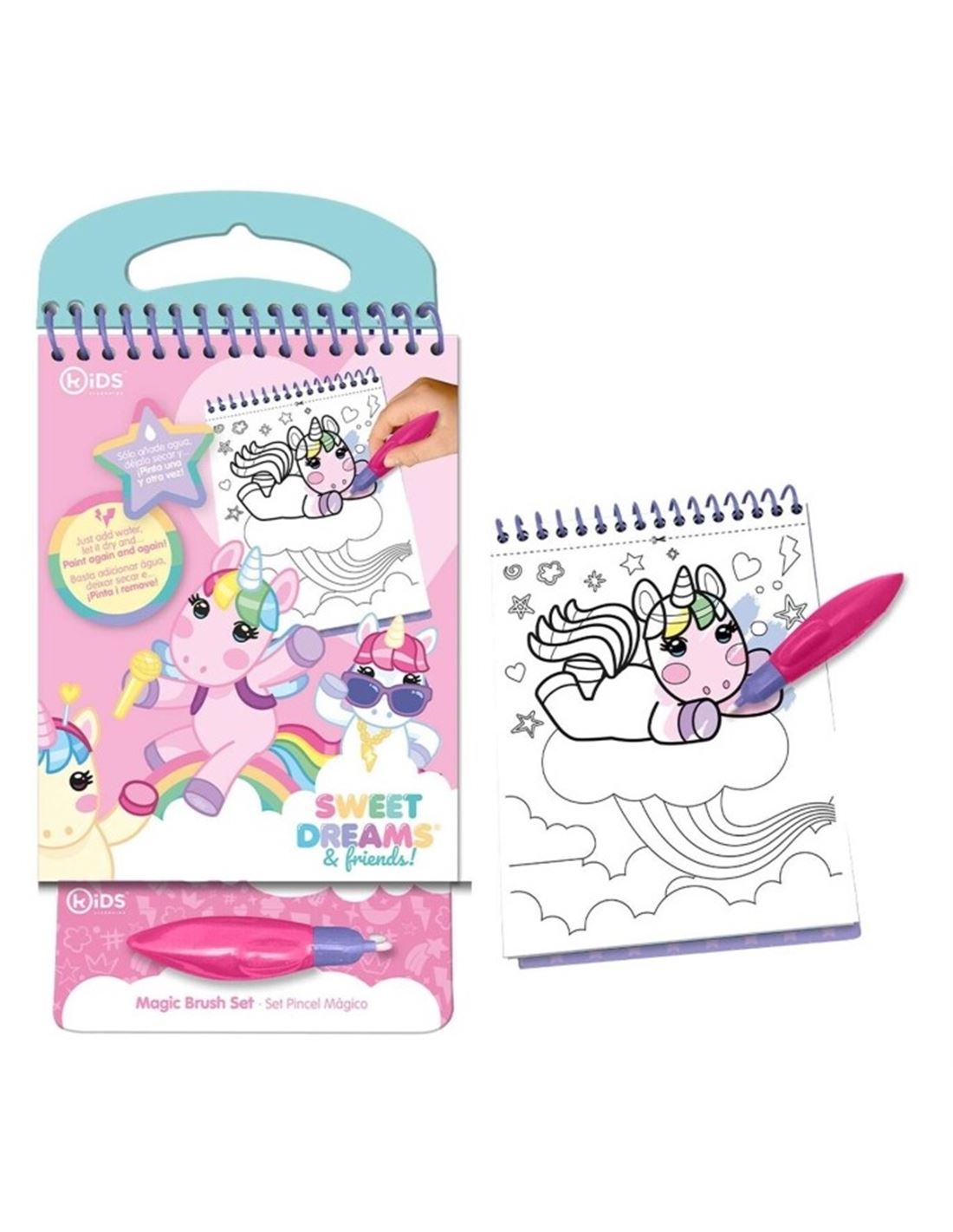 Este kit de espiral cuenta con páginas de encantadoras ilustraciones de unicornios en blanco y negro.