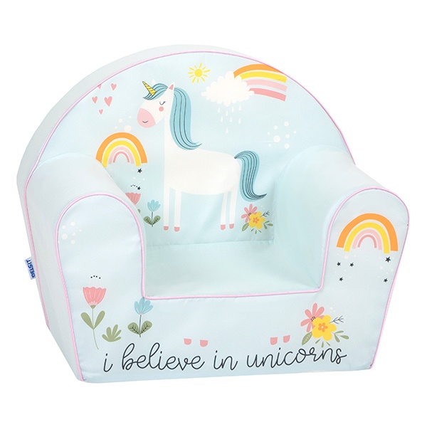 Sofá infantil con ilustración de unicornio.