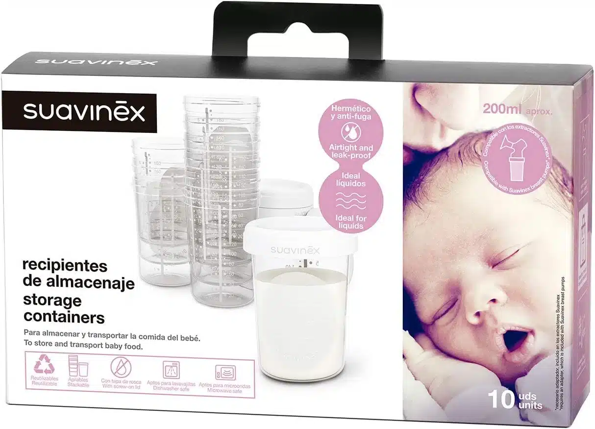 - Ideal para Líquidos Variados: Además de la leche materna, estos recipientes son perfectos para almacenar y transportar papillas u otros líquidos.