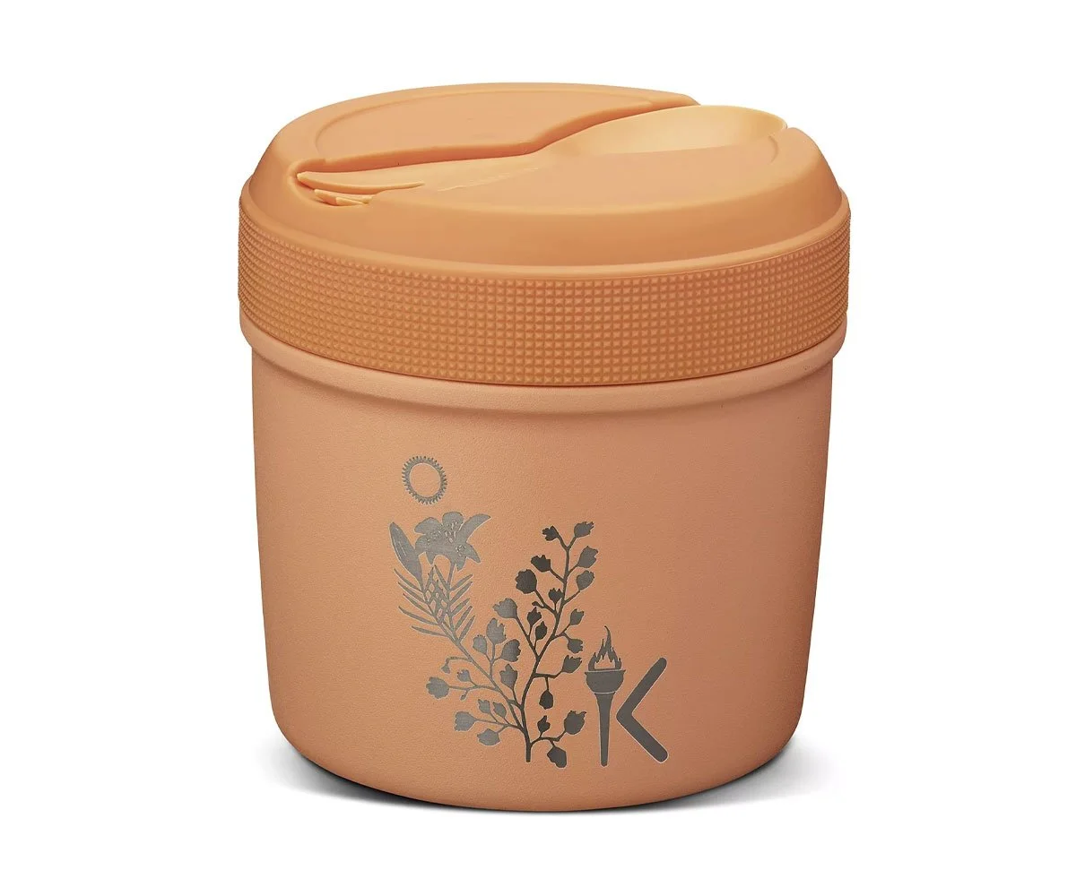 El termo Carl Oscar mantiene sus comidas calientes hasta 5h (o frías 10h), e incluye sus propios cubiertos, ¡dándote la libertad de alimentar a tu peque fácil y sin preocupaciones en cualquier aventura!
